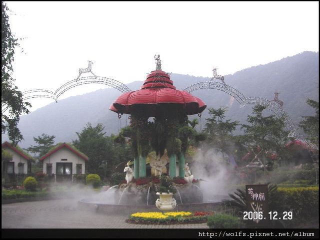 合廣場、押花生活館等休閒、生態區, 園區內也有小木屋可供人住宿. 最特別的就屬園區內的<花神廟>. 廟