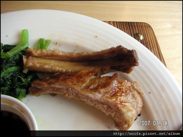 同事分了兩塊肋排給我, 這要直接用手抓著咬, 味道偏甜, 對我來說有些小油, 不太喜歡它的口感.
