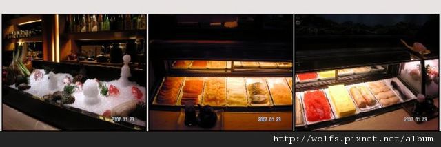 達成共識後, 當然是拍照啦, 平常可是不太會來這裡的. 印象最深的是櫃台前玻璃櫃裡滿滿的壽司料^^b