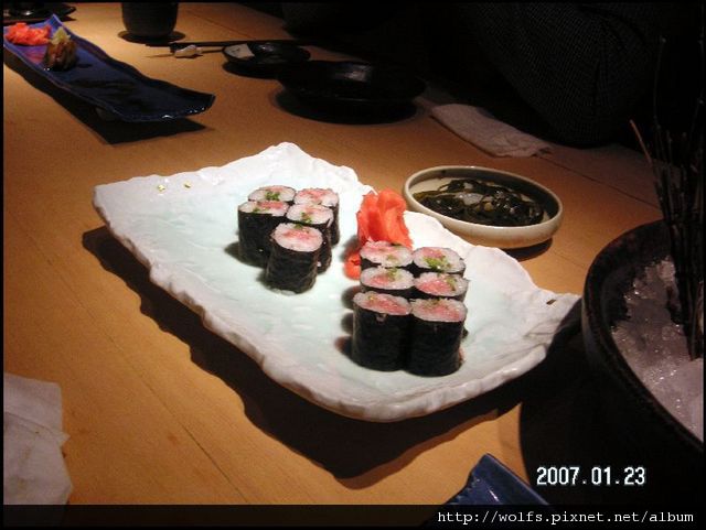 3-鐵火卷: 一盤12個鐵火卷大家分囉~~~(老大動作超快, 被他夾走一個 )