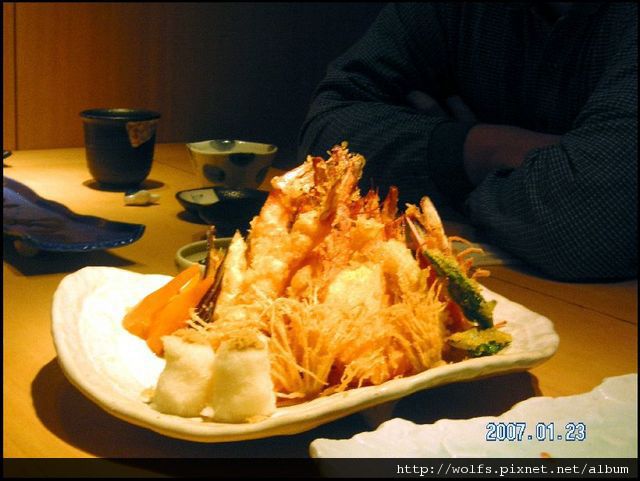 4-炸蝦天婦羅(老大必點基本款): 麵衣薄脆, 蝦子鮮甜, 無可挑剔的揚物. (一人一隻蝦子~~size 還不小咧)