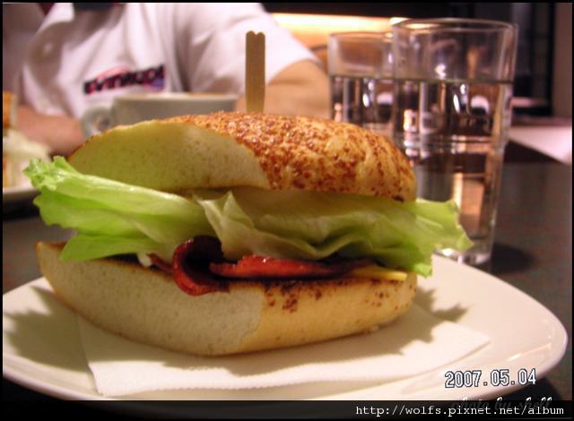 邊喝著咖啡, 邊漫無邊際的亂聊, 過了一會三明治送了上來, 大小剛好拿來塡胃.